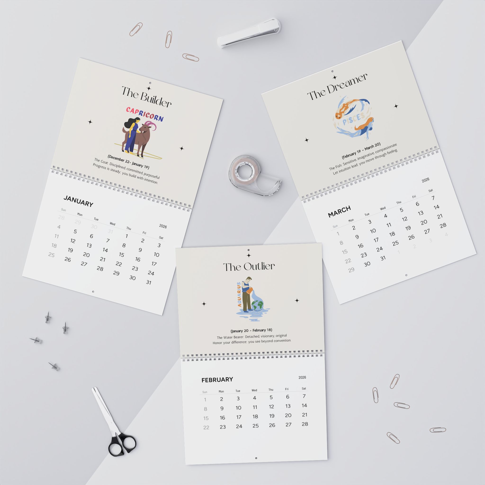 Bring a quiet, focused rhythm to each month with this illustrated 2026 wall calendar. A beautifully designed zodiac calendar that aligns each month with the energy, symbolism, and wisdom of the astrological signs. It offers insight into each sign’s essence, influence, and archetypal meaning—inviting intention, reflection, and alignment throughout the year.